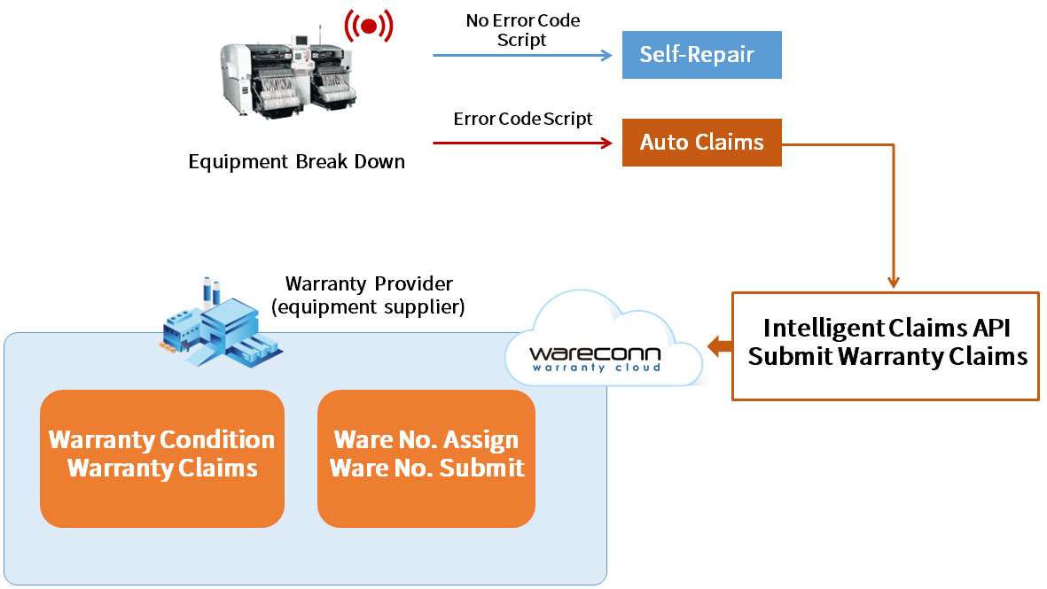 After the warranty provider returns the defective product to the service center from the customer, the service center performs actions such as receiving, testing, and repairing, and each station result information will be automatically uploaded to the Wareconne system through [Automatic Station API].