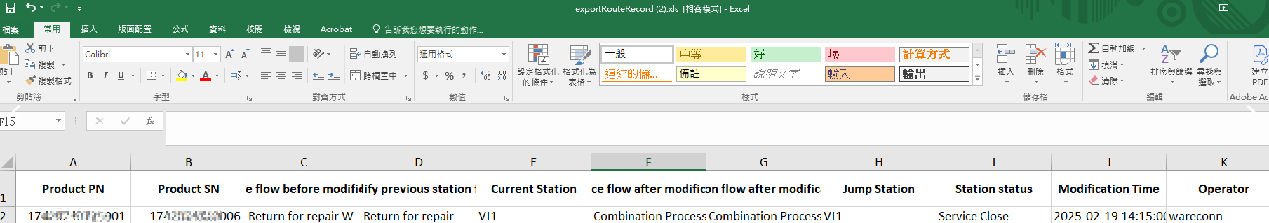 3.3 Exporting Process Change Records for Selected SNs
